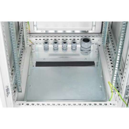 Průmyslové skříně 483 mm (19 ") jsou chráněny proti vniknutí prachu a vody v souladu s bezpečnostní úrovní IP55 (IEC EN 60529), aby poskytovaly optimalizované podmínky pro uživatelsky přívětivou instalaci aktivních a pasivních součástí sítě doprovázených úhledným vedením kabelů v barva je tvořena 70-90 µm silným práškovým nátěrem v barvě šedé (RAL 7035) se schopností přilnavosti podle EN ISO 2409: třída 0 až 1. Další provedená 500 hodinová zkouška odolnosti vůči postřiku solí potvrzuje možný rozsah provozních teplot od -25 ° C do +70 ° C. Vnitřní montážní profilové lišty 483 mm (19 ”) (dva páry = 4 kusy) jsou galvanicky pozinkovány a označeny výškovými jednotkami (počítatelné z obou směrů). jsou variabilní v hloubce a jsou spojeny s přídavnými podpůrnými tyčemi pro realizaci rozsáhlých instalací zařízení o délce 483 mm (19 ”). Dále je uvnitř konstrukce otočného profilu. Každá skříň je vybavena soklem (výška 100 mm), který nabízí additio prostor pro kabeláž. Základna každé skříňky je vybavena posuvným kabelovým vstupním panelem s gumovým těsněním a pěti kabelovými vstupy PG (4x PG21 + 1x PG48). Rozsáhlé portfolio příslušenství pro správu kabelů, police atd. Pomůže splnit mnoho požadavků při každodenním používání.
