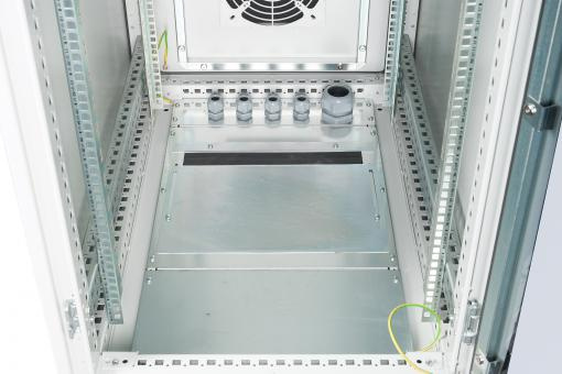 Průmyslové skříně 483 mm (19 ") jsou chráněny proti vniknutí prachu a vody v souladu s bezpečnostní úrovní IP55 (IEC EN 60529), aby poskytovaly optimalizované podmínky pro uživatelsky přívětivou instalaci aktivních a pasivních součástí sítě doprovázených úhledným vedením kabelů v barva je tvořena 70-90 µm silným práškovým nátěrem v barvě šedé (RAL 7035) se schopností přilnavosti podle EN ISO 2409: třída 0 až 1. Další provedená 500 hodinová zkouška odolnosti vůči postřiku solí potvrzuje možný rozsah provozních teplot od -25 ° C do +70 ° C. Vnitřní montážní profilové lišty 483 mm (19 ”) (dva páry = 4 kusy) jsou galvanicky pozinkovány a označeny výškovými jednotkami (počítatelné z obou směrů). jsou variabilní v hloubce a jsou spojeny s přídavnými podpůrnými tyčemi pro realizaci rozsáhlých instalací zařízení o délce 483 mm (19 ”). Dále je uvnitř konstrukce otočného profilu. Každá skříň je vybavena soklem (výška 100 mm), který nabízí additio prostor pro kabeláž. Základna každé skříňky je vybavena posuvným kabelovým vstupním panelem s gumovým těsněním a pěti kabelovými vstupy PG (4x PG21 + 1x PG48). Rozsáhlé portfolio příslušenství pro správu kabelů, police atd. Pomůže splnit mnoho požadavků při každodenním používání.