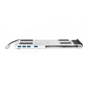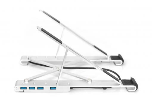 DIGITUS skládací stojan na notebook s integrovaným 5 Portovým USB 3.0 rozbočovačem, PD Nabíjení, vstup USB-C , stříbrný