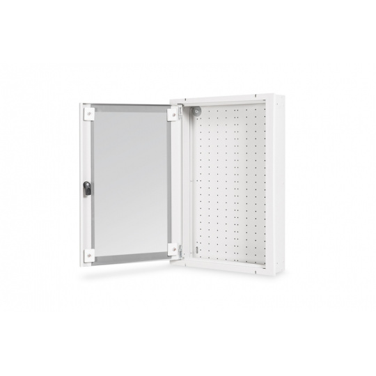 DIGITUS Skříň pro domácí automatizaci na zeď, povrchová montáž 600x400x100 mm, rámy skleněné dveře, šedá (RAL 7035)
