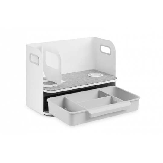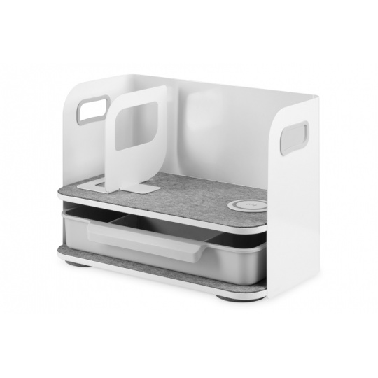 Stolní organizér s úložnou zásuvkou + nabíječka QI bílá/šedá