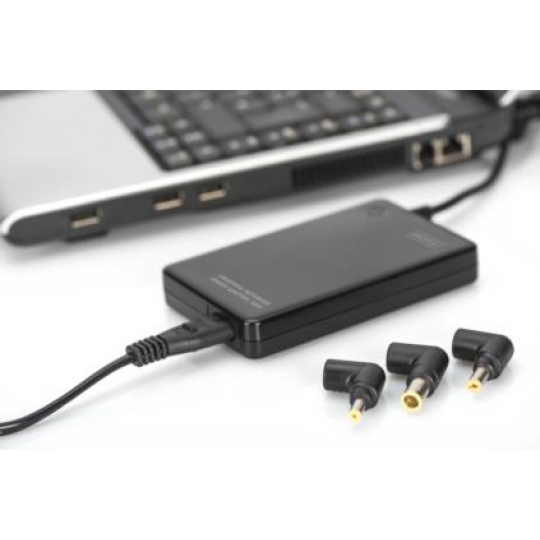 DIGITUS Univerzální Notebook Power Adapter je super tenký a kompaktní náhradou za vadné nebo ztracené originální napájecí adaptéry. Je také ideální jako sekundární napájecí adaptér pro kanceláře, pro cestování nebo doma. To nabízí 11 nabíjecí adaptéry pro prakticky každý notebook z nejpopulárnějších značek, jako jsou Acer, Asus, Samsung, Sony, HP, Toshiba, Lenovo, Fujitsu, IBM, Compaq, NEC, atd Potřebné Výstupní napětí je automaticky řízených zvolená odpovídající nabíjecí adaptér. Má také další USB port nabíjení pro nabíjení mobilních zařízení, jako jsou chytré telefony, tablety, fotoaparáty, notebooky atd, stejně jako samotný napájecí adaptér, jsou chráněny proti zkratu, přehřátí, přepětí a nadproudu.