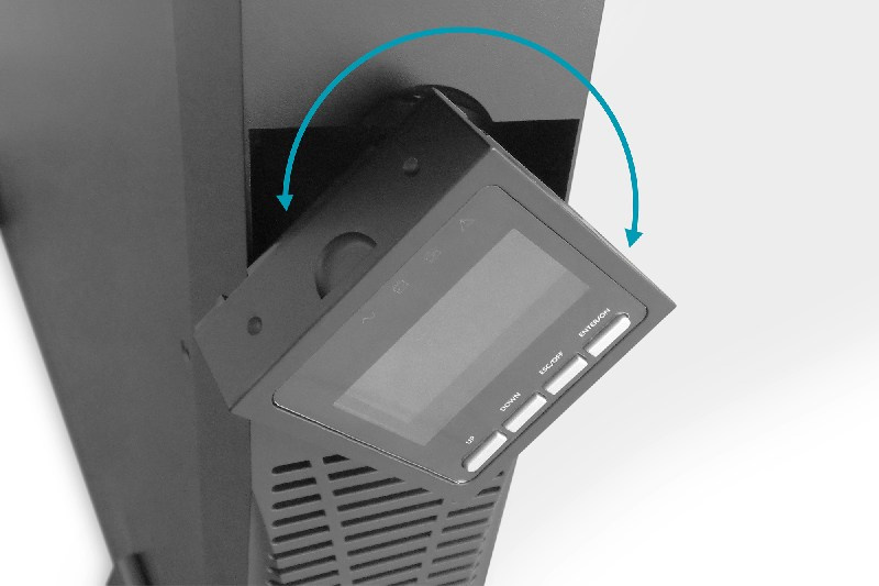 Uživatelsky přívětivý LCD displej poskytuje přehled o stavu UPS pro snadnou instalaci, konfiguraci a provoz.