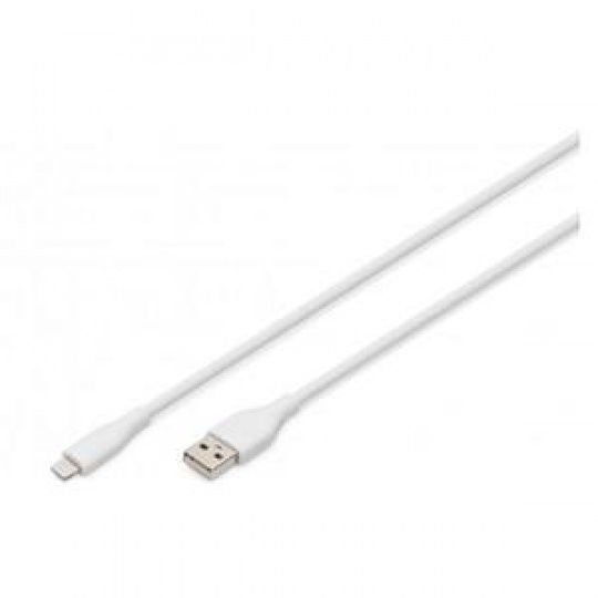 Digitus USB Silicone charging cable, USB-A - Lightning 0,5m, USB 2.0, 12W, white