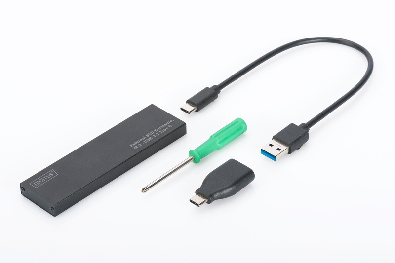 DIGITUS USB Type-C 3.1 Externí SSD skříň M.2 (NGFF) B-Key, alu pouzdro, černá, chipset: EP9461E chipset: EP9461E