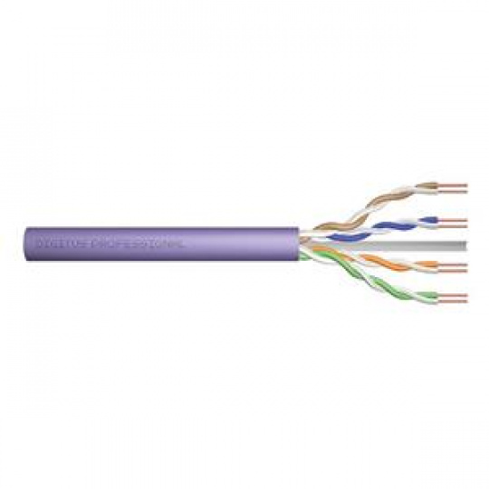 Digitus UTP kabel drát AWG23, měď, Cat.6, box 100m, LSOH, fialová