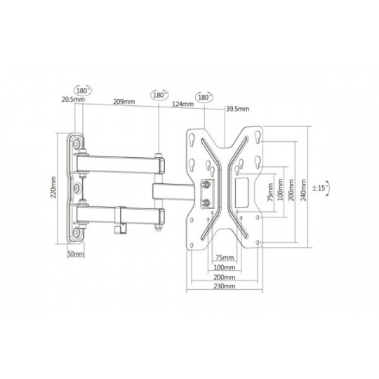 Digitus VESA 3D univerzální držák TV/Monitoru do 107cm (42"), 15o sklopný, 180o otočný, Vesa 75x100x200, 30kg