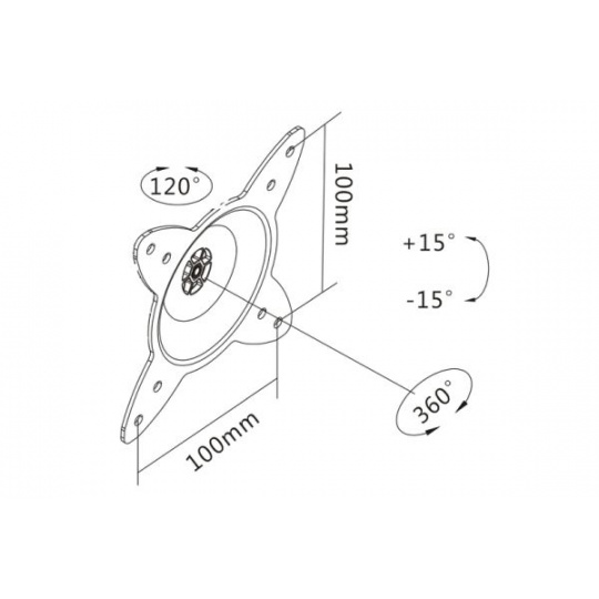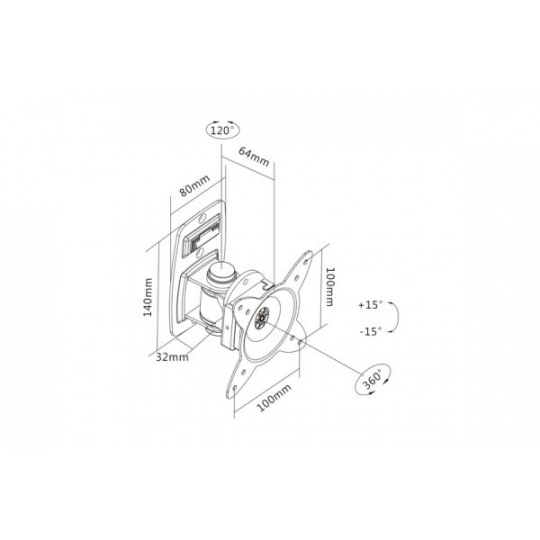 Digitus VESA držák LCD/LED na zeď do 69cm (27") +-15o otočný, 360o otočný, 100x100, 15kg