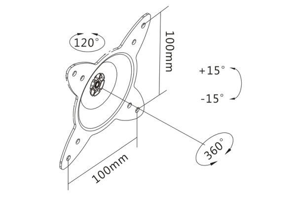 Digitus VESA držák LCD/LED na zeď do 69cm (27") +-15o otočný, 360o otočný, 100x100, 15kg
