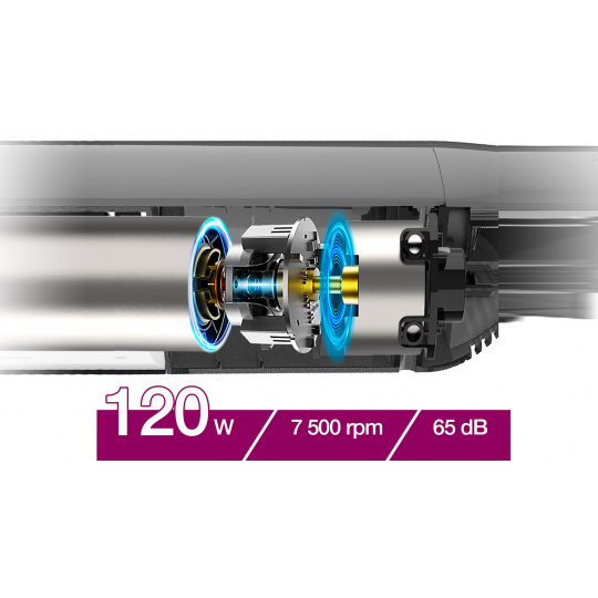 Osazený BLDC motor dosahuje výkonu až 120W, má o třetinu delší životnost, vyšší spolehlivost, tišší chod a hlavně úspornější provoz oproti klasickým motorům.