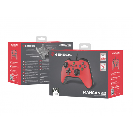 genesis.htmlDrátový gamepad Genesis MANGAN 300, pro PC/Switch/Mobil, červený