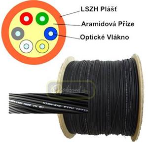 Optický singlemódový 8 vláknový univerzální (vnitřní/venkovní) samonosný kabel DROP FTTx v návinu 1000 m na cívce.