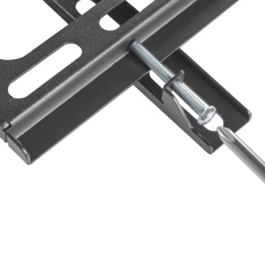 Nástěnný držák je určen pro instalaci TV s plochou obrazovkou s úhlopříčkami od 23“ do 43“ a hmotností až do 45 kg. Super tenký design, poskytuje maximálně stabilní a bezpečné uchycení televizoru na stěnu.