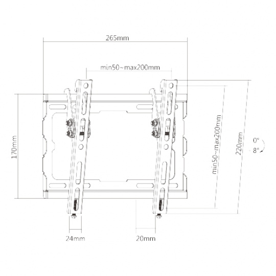 • Volně sklopitelná konstrukce pro jednoduchou změnu náklonu TV v úhlu 0°~-8°