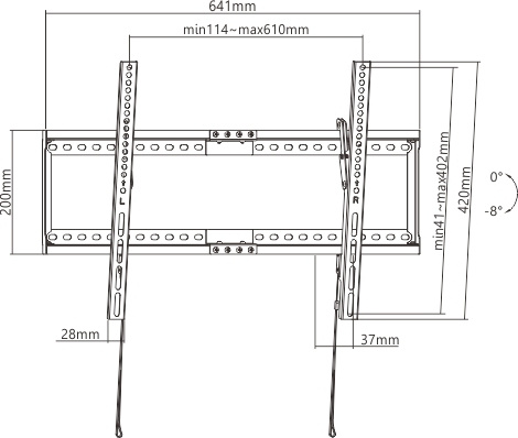• Volně sklopitelná konstrukce pro jednoduchou změnu náklonu TV v úhlu 0°~-8°