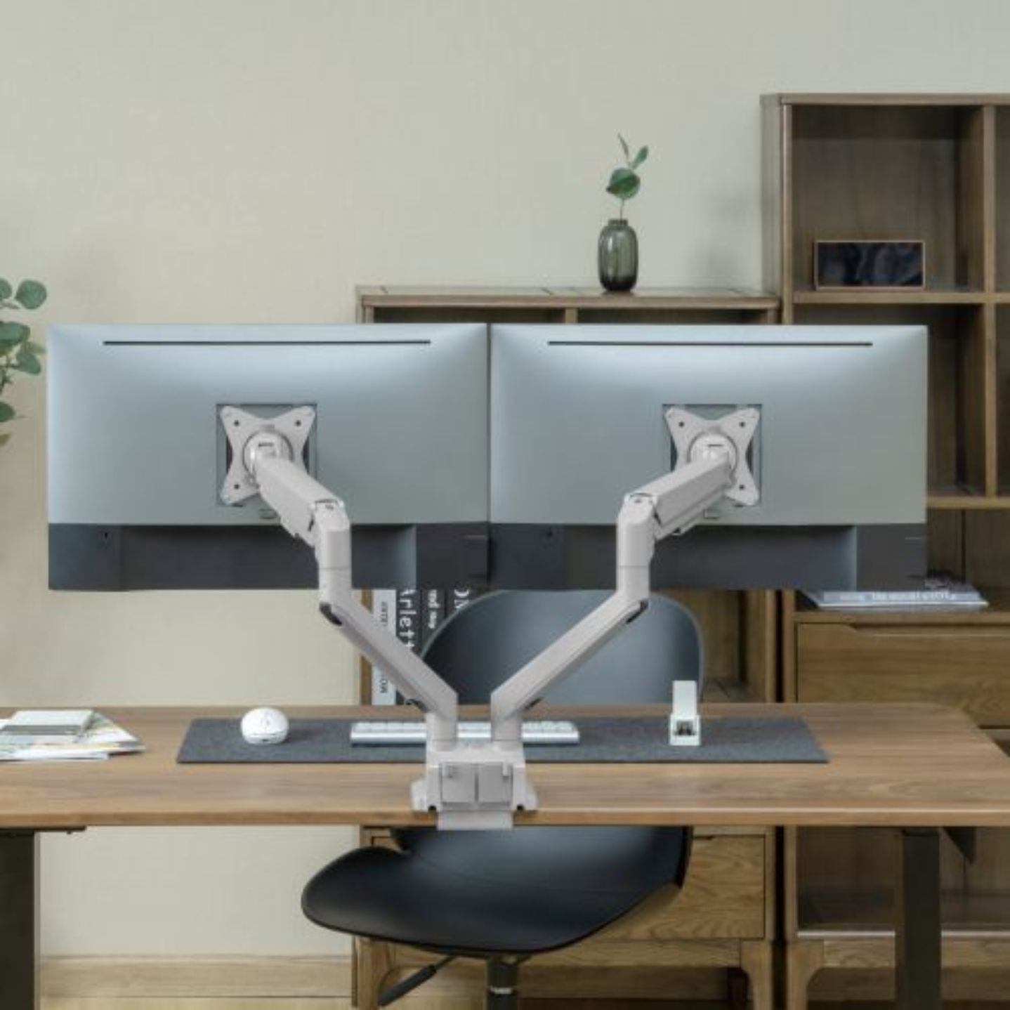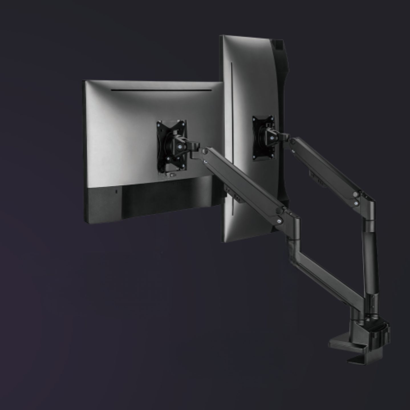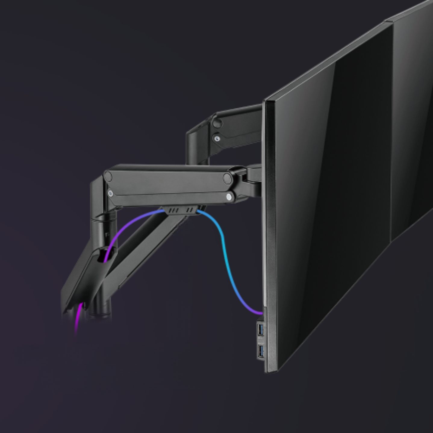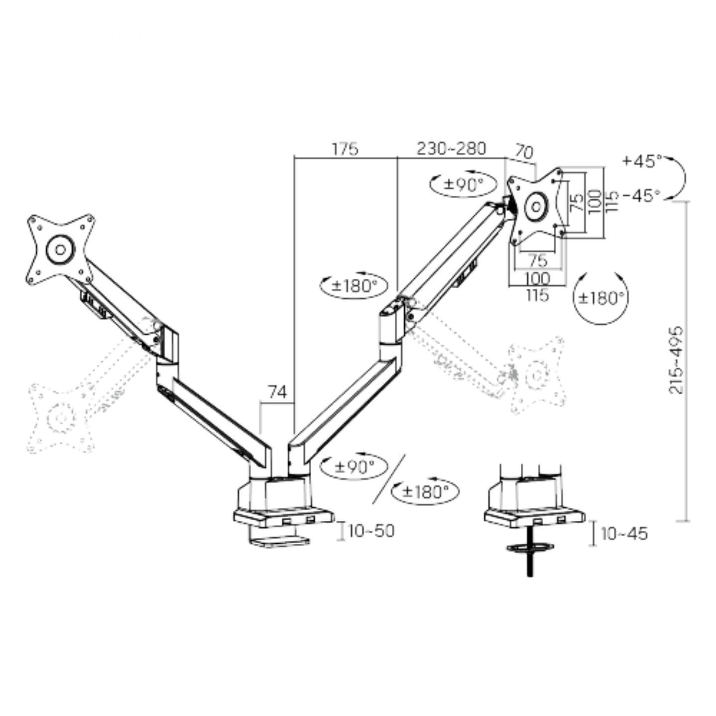 Díky odolné ocelové konstrukci poskytuje stabilní podporu pro dva monitory s úhlopříčkou 17" až 32" a hmotností až 9 kg na rameno. Flexibilní konstrukce pro dostatečné nastavení výšky a pozorovacích úhlů s možností nastavení orientace monitoru na výšku nebo na šířku. Součástí balení jsou průchodky a svorky pro instalaci na téměř jakoukoliv pracovní plochu. Odnímatelná deska VESA pro uživatelsky přívětivou instalaci.