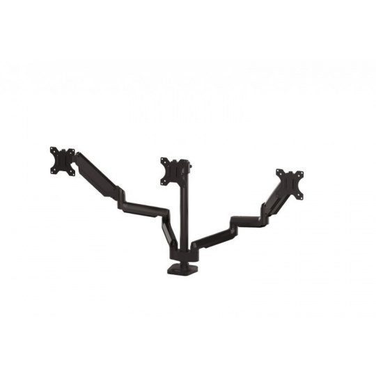 • nezávislé nastavitelné rameno pro 3 monitory • usnadňuje organizaci pracovního prostoru • moderní design • technologie plynových pružin umožňuje snadné nastavení monitorů pro práci a sdílení obrazovky • konektory USB 3.0 umožňují snadné připojení oblíbených zařízení • intuitivní systém správy kabeláže minimalizuje nepořádek • max. 360 ° otáčení obrazovky, max. sklon (pravý, levý) 180 ° • max. stoupání (nahoru, dolů) + 85 ° / –15 ° • max. výška 40 cm, dosah 67 cm • montážní systém VESA, splňuje normy VESA 75 × 75 a 100 × 100 • snadná montáž ke stolu pomocí svorky nebo průvlaku ( svorka 2–12 cm, průvlak 2–9 cm ) • barva černá • materiál kov • hmotnost 8,4 kg • doporučeno Mezinárodní akademií pro ergonomické produkty FIRA™