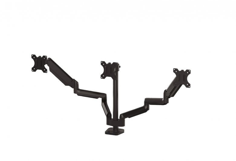• nezávislé nastavitelné rameno pro 3 monitory • usnadňuje organizaci pracovního prostoru • moderní design • technologie plynových pružin umožňuje snadné nastavení monitorů pro práci a sdílení obrazovky • konektory USB 3.0 umožňují snadné připojení oblíbených zařízení • intuitivní systém správy kabeláže minimalizuje nepořádek • max. 360 ° otáčení obrazovky, max. sklon (pravý, levý) 180 ° • max. stoupání (nahoru, dolů) + 85 ° / –15 ° • max. výška 40 cm, dosah 67 cm • montážní systém VESA, splňuje normy VESA 75 × 75 a 100 × 100 • snadná montáž ke stolu pomocí svorky nebo průvlaku ( svorka 2–12 cm, průvlak 2–9 cm ) • barva černá • materiál kov • hmotnost 8,4 kg • doporučeno Mezinárodní akademií pro ergonomické produkty FIRA™