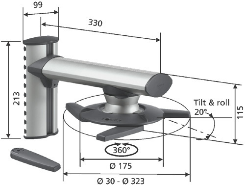 snadné nastavení promítacího úhlu a jeho aretace pootočením páčky
