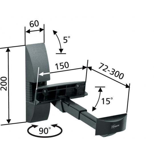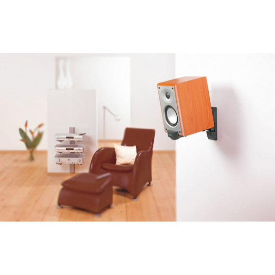 Nástěnný držák bez nutnosti vrtání do skříně reprosoustavy, ta se sevře čelisťovým mechanismem. Ideální pro regálové reprosoustavy střední velikosti.