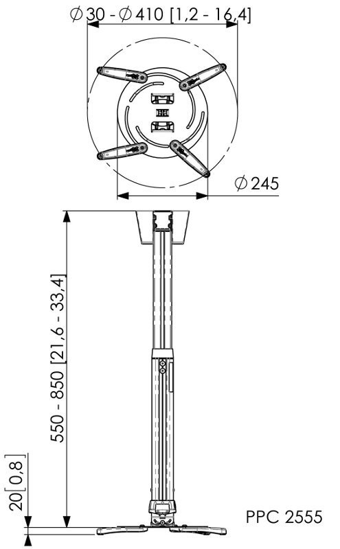 Teleskopický držák na větší projektor Vogel's PPC 2555, 55-85 cm, stříbrný