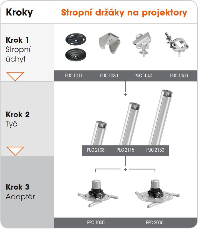 PPC 2500 Professional Stropní držák na projektor do 30 kg vyhovuje prakticky všem větším projektorům do 30 kg *možnost rotace a náklonu zabezpečí optimální promítací úhel. *jemné nastavení podélného a příčného náklonu *aretace ve všech osách zajistí stabilitu nastaveného úhlu *speciální bezpečnostní šrouby *čtyři nastavitelná kovová ramena *rychlá a snadná montáž Specifikace výrobku *nosnost 30 kg *výška 135 mm *náklon 15° *natáčení 360° *materiál kov