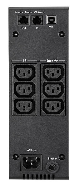 Výstupní přípojky: (3) IEC-320-C13, (3) IEC-320-C13 surge only