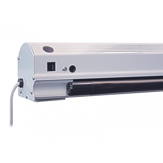 Elektrické nástěnné stahovací plátno s úhlopříčkou 110" a poměrem stran 16:9. Kovová konstrukce zajišťuje snadnou instalaci na zdi a stropy, pozorovací úhel 180° zas vysokou kvalitu obrazu i z problémových úhlů. Výhodou je infračervené (IR) univerzální dálkové ovládání a synchronizovaný motor, který dovoluje tichý provoz s delší životností a menší spotřebou. Plátno má zvýšený vrchní černý okraj 24" (61 cm).
