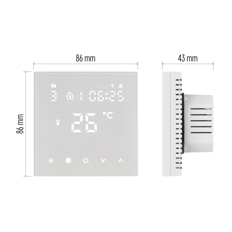 typ ovládání programovatelný elektronický pokojový termostat, možnost ovládaní přes mobil (iOS, Android)