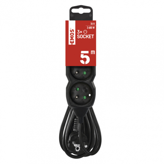 EMOS prodlužovací přívod 3z/5m, černý, 1,5mm