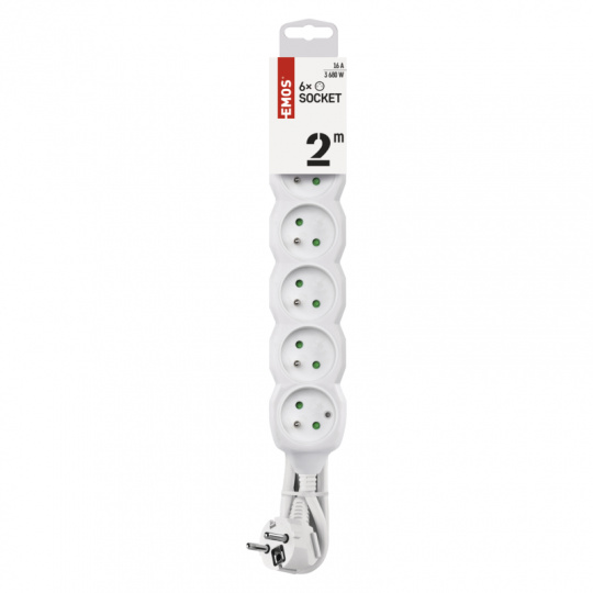 EMOS Prodlužovací přívod 6Z/2m 3680W,PVC,bílá