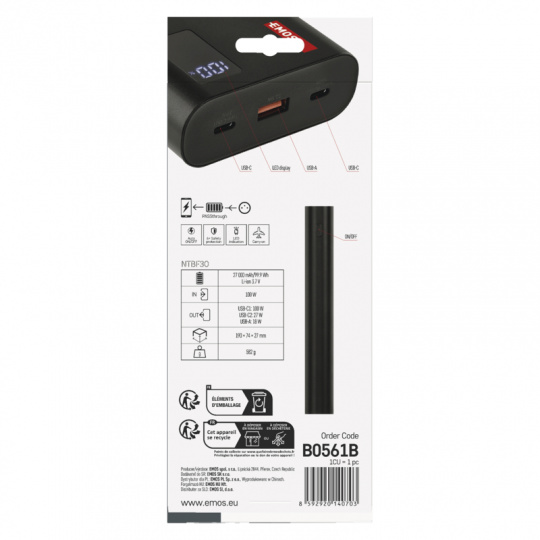 EMOS PWB NTBF30 27000MAH 100W PD 1×USB-C 1×USB-A
