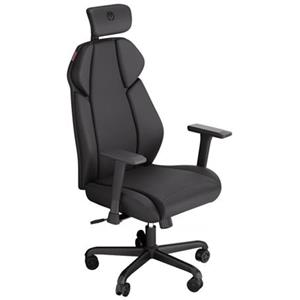 Robustní herní židle s atraktivním designem poskytuje dokonalou oporu a pohodlí i při dlouhém sezení u počítače. Je vyrobena z kvalitní prodyšné textilní látky a syntetické kůže. Nastavitelná výška židle, opěrky rukou nastavitelné ve všech směrech a úhel sklonu opěradla až 125° zajistí maximální komfort. Kolečka o průměru 60 mm jsou pokryta vrstvou odolného nylonu, který zároveň chrání podlahu před poškrábáním a snižuje hlučnost. Nosnost židle je až 120 kg.