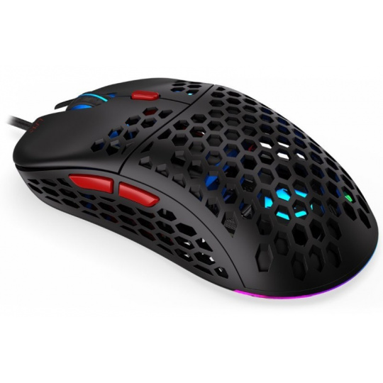 Ultralehká herní myš disponující 6 programovatelnými tlačítky a vysoce přesným optickým senzorem Pixart PMW3370 s rozlišením až 19000 dpi. Herní design doplňuje adresovatelné RGB podsvícení. Kvalitní spínače Khail GM 8.0 vydrží více než 80 milionů kliků. Připojení je realizováno skrze opletený USB kabel o délce 1,8 m.
