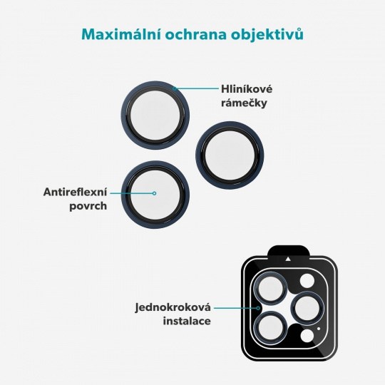 Dopřejte svému iPhonu dokonalou ochranu fotoaparátu díky Aluminium Lens Protectors. Tato ochrana objektivů s hliníkovými rámečky účinně chrání objektivy před poškrábáním a nárazy, takže se nemusíte obávat opotřebení z každodenního používání. Speciální antireflexní povrch zajišťuje, že vaše fotografie i videa budou vždy ostré a kvalitní za všech podmínek.