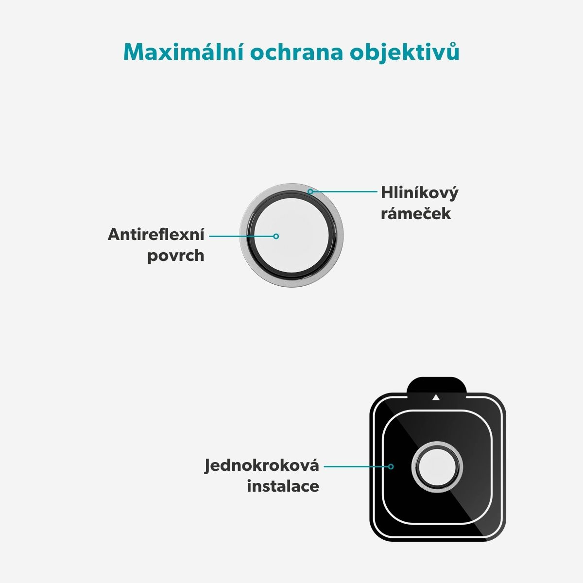 Dopřejte svému iPhonu dokonalou ochranu fotoaparátu díky Aluminium Lens Protectors. Tato ochrana objektivů s hliníkovými rámečky účinně chrání objektivy před poškrábáním a nárazy, takže se nemusíte obávat opotřebení z každodenního používání. Speciální antireflexní povrch zajišťuje, že vaše fotografie i videa budou vždy ostré a kvalitní za všech podmínek.