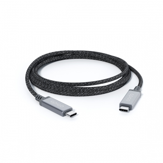Epico Thunderbolt 4 Braided Cable je vysoce výkonný USB-C na USB-C kabel s textilním opletením a hliníkovými konektory. Materiál opletení zabraňuje zamotávání a je určen pro každodenní náročné použití. Pomocí 1,5 m kabelu, který podporuje nabíjení s výkonem až 100 W, připojíte až 5 zařízení s kvalitou obrazu v Ultra HD, přičemž můžete připojit jeden monitor s 8K (30 fps) rozlišením, nebo dva s 4K (60 fps) rozlišením.