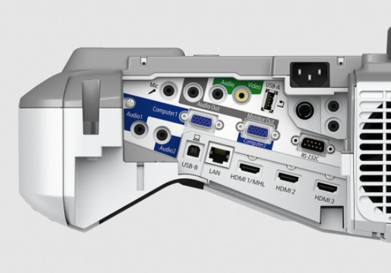 Rozhraní: USB 2.0 typu A, USB 2.0 typu B, RS-232C, Ethernetové rozhraní (100 Base-TX / 10 Base-T), Bezdrátová síť LAN IEEE 802.11 b/g/n (volitelně), VGA vstup (2x), VGA výstup, HDMI vstup (3x), Kompozitní vstup, RGB vstup (2x), RGB výstup, MHL, Audiovýstup, stereofonní konektor mini-jack, Audiovstup, stereofonní konektor mini-jack (3x), vstup pro mikrofon, Vstup synchronizace, Výstup synchronizace