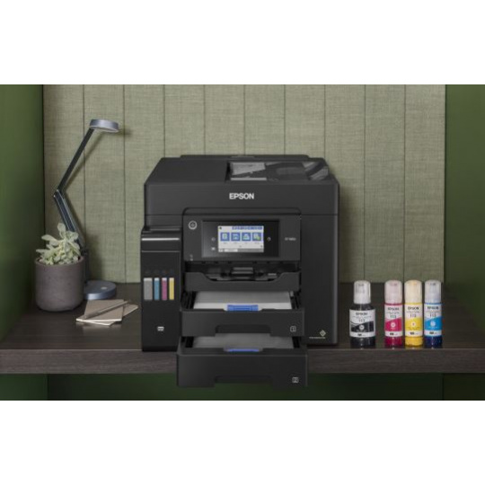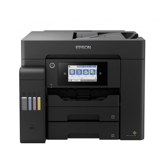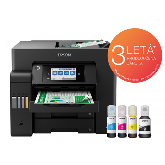 S touto snadno použitelnou tiskárnou EcoTank můžete tisknout, skenovat, kopírovat a faxovat dokumenty při opravdu výjimečně nízkých nákladech na jednu stránku. Veškeré úlohy lze zvládat rychle díky vysoké rychlosti tisku a skenování, dvěma předním zásobníkům na 250 listů, zadnímu podavači na 50 listů a automatickému podavači dokumentů o kapacitě 50 listů. Díky funkcím mobilního tisku, Ethernet připojení a dotykovému LCD displeji s úhlopříčkou 10,9 cm můžete tisknout tak, jak právě potřebujete.