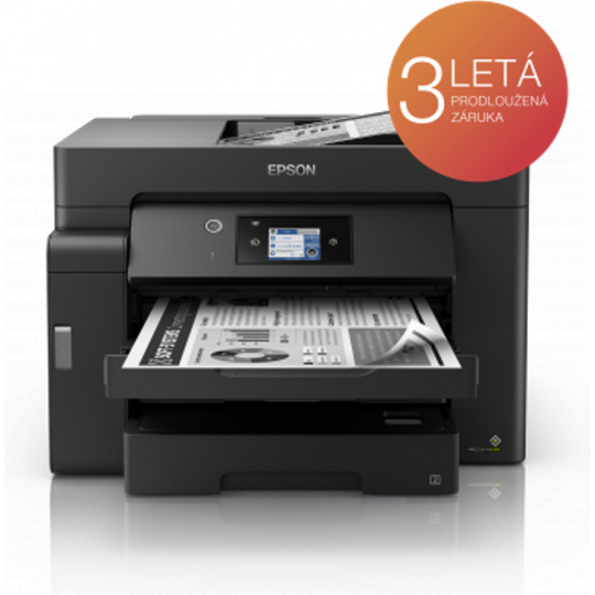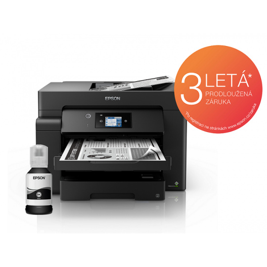 Tato černobílá tiskárna EcoTank s množstvím funkcí je určena uživatelům v menších kancelářích a firmách, usnadňuje tiskové úlohy do formátu A3+ a nabízí nízké náklady na stránku. Tiskové úlohy do formátu A3+ lze zvládat rychle díky vysoké rychlosti tisku a skenování, dvěma předním zásobníkům na 250 listů A3, zadnímu podavači na 50 listů A3 a automatickému podavači dokumentů s kapacitou 50 listů A3. Díky funkcím mobilního tisku, Ethernet připojení a dotykovému LCD displeji s úhlopříčkou 6,8 cm můžete tisknout tak, jak právě potřebujete.