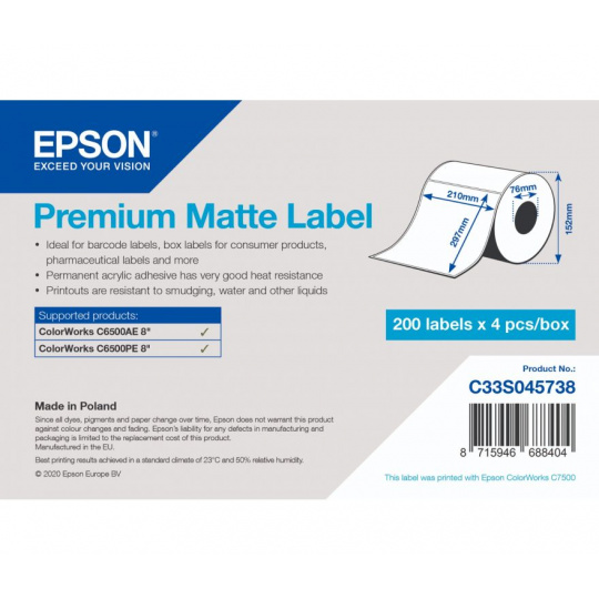 EPSON Premium Matte Label - Die Cut Roll: 210mm x 297mm, 200 labels