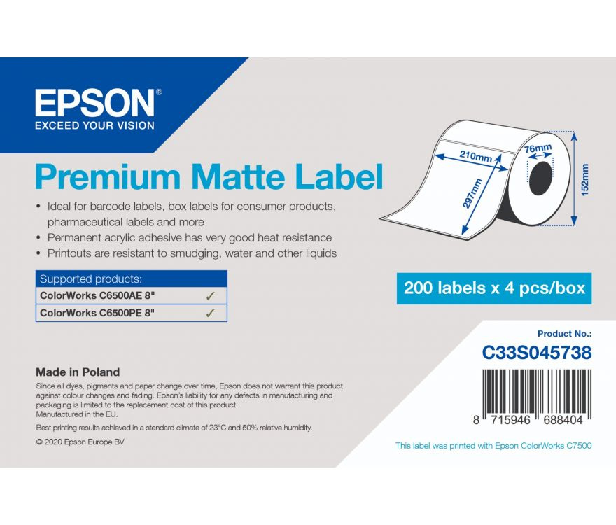 EPSON Premium Matte Label - Die Cut Roll: 210mm x 297mm, 200 labels