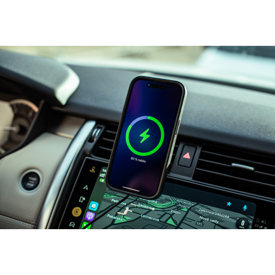 Nabíjecí držák do ventilace auta s MagSafe, výkonem 15W a integrovaným USB-C kabelem v délce 1,5 m. Promyšlený způsob ukotvení pasuje do jakékoliv ventilace v automobilu. Díky možnosti utahování za pomoci šroubu držák vždy perfektně ukotvíte. Barva: černá