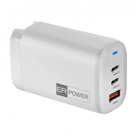 ER POWER 65W GaN síťový adaptér 2xUSB-C PD/USB-A bílý