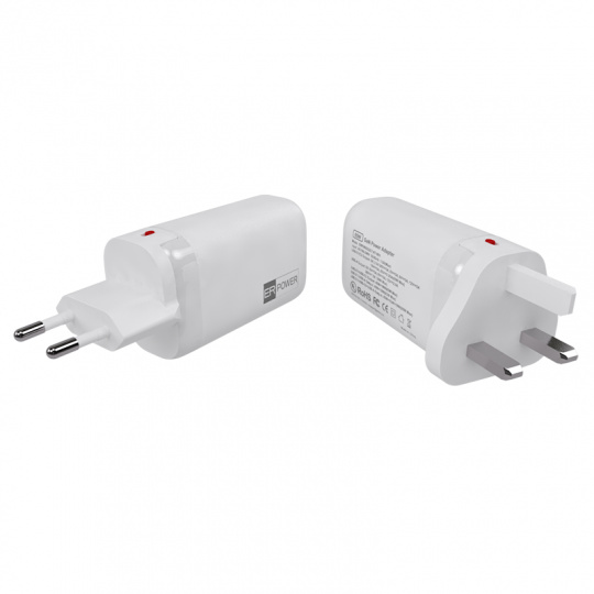 Cestovní GaN nabíječka s výkonem 65W a porty USB-C a USB-A. Součástí balení jsou vyměnitelné vidlice UK a EU. Nabíječka disponuje dvěma porty USB-C a portem USB-A. Vyměnitelné UK a EU vidlice, které v případě potřeby umístíte na US vidlici, která je v nabíječce integrována. Barva: bílá
