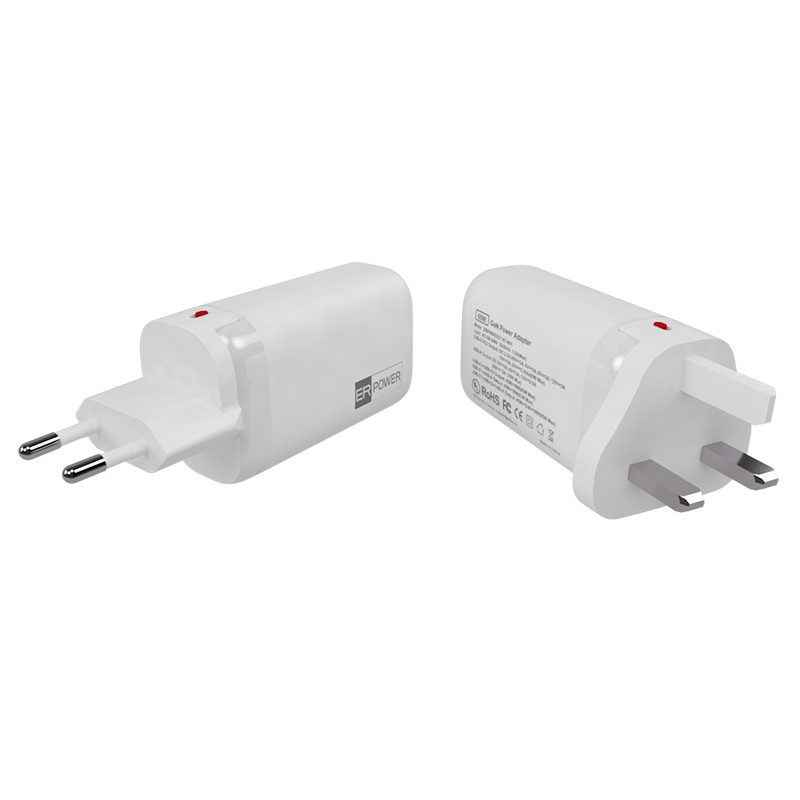 ER POWER 65W GaN síťový adaptér 2xUSB-C PD/USB-A bílý