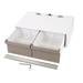 Drawer Dimensions: internal = 5" x 9.25" x 8.5" (12.7 x 23.5 x 21.6 cm); can be divided into 4 or 8 compartments
