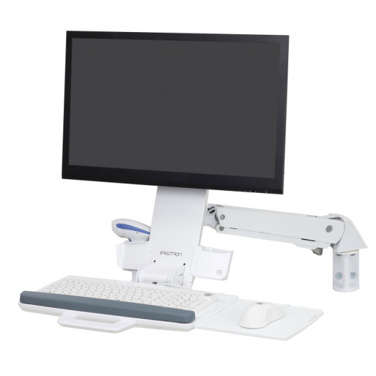 Let caregivers in your healthcare organization work sitting or standing with everything they need at their fingertips. This sit-stand combo arm holds a monitor, barcode scanner, keyboard, wrist rest and mouse all on the same height-adjustable arm for an ergonomic fit that supports the best workflows (and comfort).