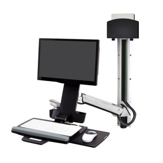 ERGOTRON StyleView® Sit-Stand Combo System, Small CPU Holder (aluminum), držák na zeď, monitor/pc/myš/klávesnice/skener
