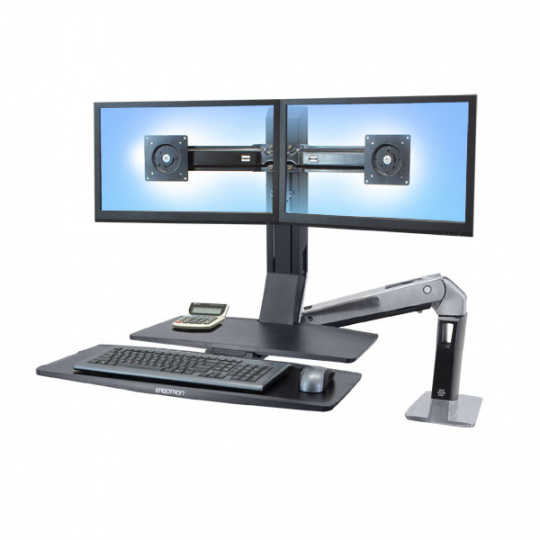 ERGOTRON WorkFit-A II, Dual, 5" Lift Engine and Worksurface, Polished Aluminum,stol,drž. 2x mon.,kláv.deska
